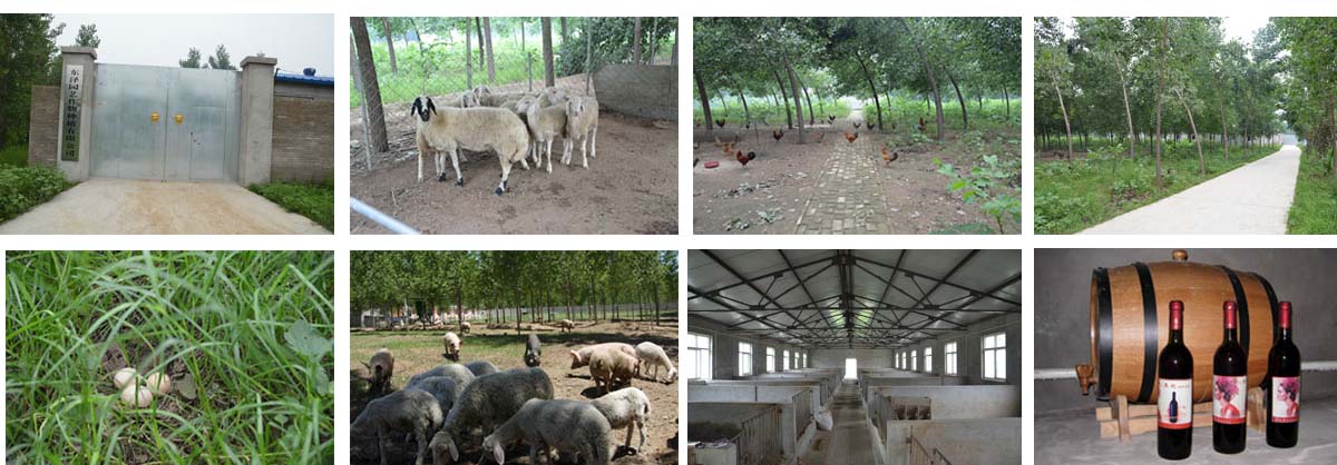 園內(nèi)散養(yǎng)黑豬、白豬,以玉米、麩皮、豬菜喂食,生長(zhǎng)期十個(gè)月,肉質(zhì)細(xì)膩,營(yíng)養(yǎng)價(jià)值高,口感好;散養(yǎng)綿羊、山羊,以園內(nèi)生長(zhǎng)青草、野菜為食,肉質(zhì)鮮嫩,營(yíng)養(yǎng)成分豐富;散養(yǎng)三黃雞、油雞、柴雞,主要以螞蚱、草籽、昆蟲、野菜為食,配以玉米面、豆粕輔助,所生雞蛋富含人體所需多種營(yíng)養(yǎng)成分、維生素、蛋白質(zhì)和氨基酸。因散養(yǎng)畜禽運(yùn)動(dòng)量大,光照充足,風(fēng)吹雨淋,并能在土壤里攝取各種礦物質(zhì),所以體格健壯,極少生病,飼養(yǎng)人員定期喂食園內(nèi)生長(zhǎng)的魚腥草、板藍(lán)根等植物,預(yù)防疾病。